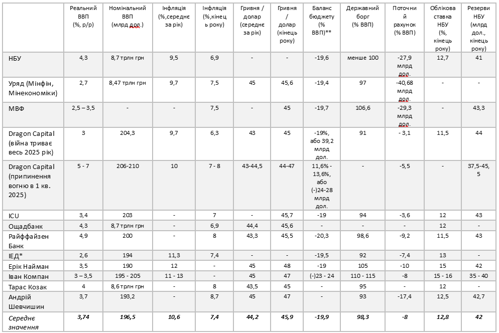 З розширеним консенсус-прогнозом щодо параметрів української економіки в 2025 році можна ознайомитись в таблиці нижче.