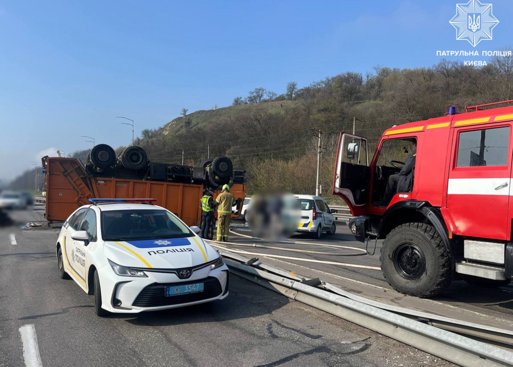 - Через перекинуту габаритну техніку рух магістраллю в бік виїзду з міста (або на певних ділянках Голосіївського району) заблоковано або значно ускладнено.