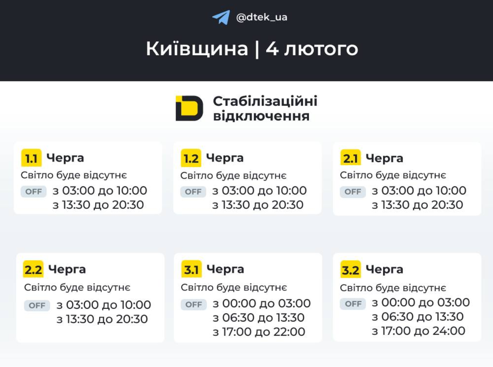 Графіки відключень на 4 лютого