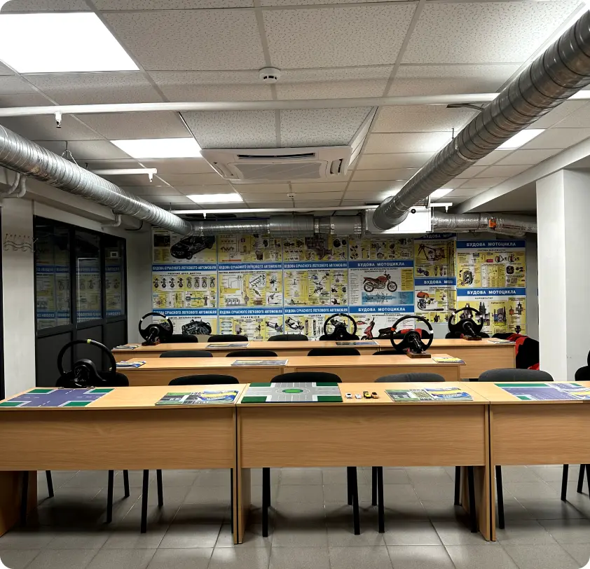 - сучасна матеріальна база, комфортні класи для навчання і автопарк;