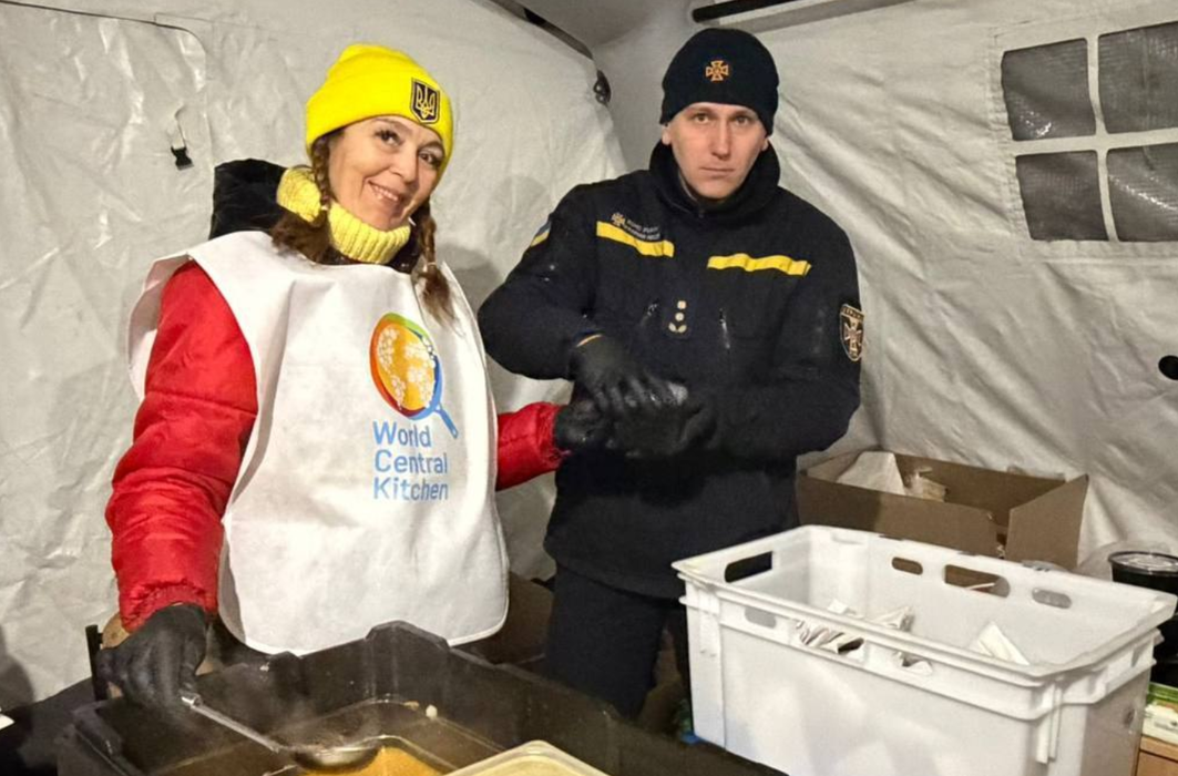 В умовах сильних морозів і відключення комунальних послуг волонтери спільно з рятувальниками надають мешканцям безкоштовну гарячу їжу: