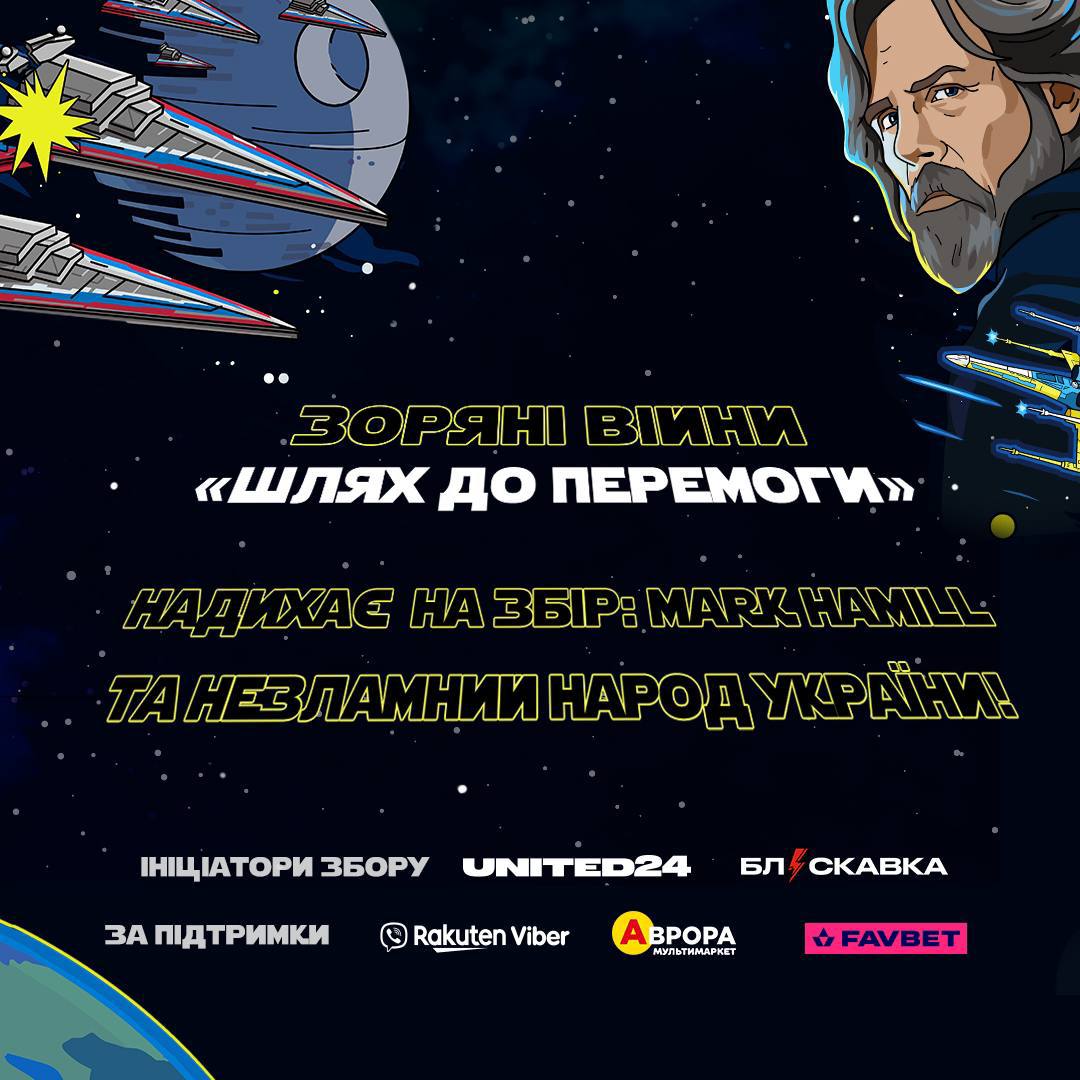Обличчям фандрейзингу став амбасадор UNITED24 Марк Гемілл – актор, що зіграв Люка Скайвокера в кіноепопеї "Зоряні війни". Збір проходить за підтримки Viber Україна, Аврора Мультимаркет та Favbet.