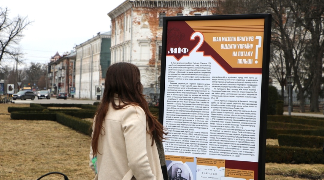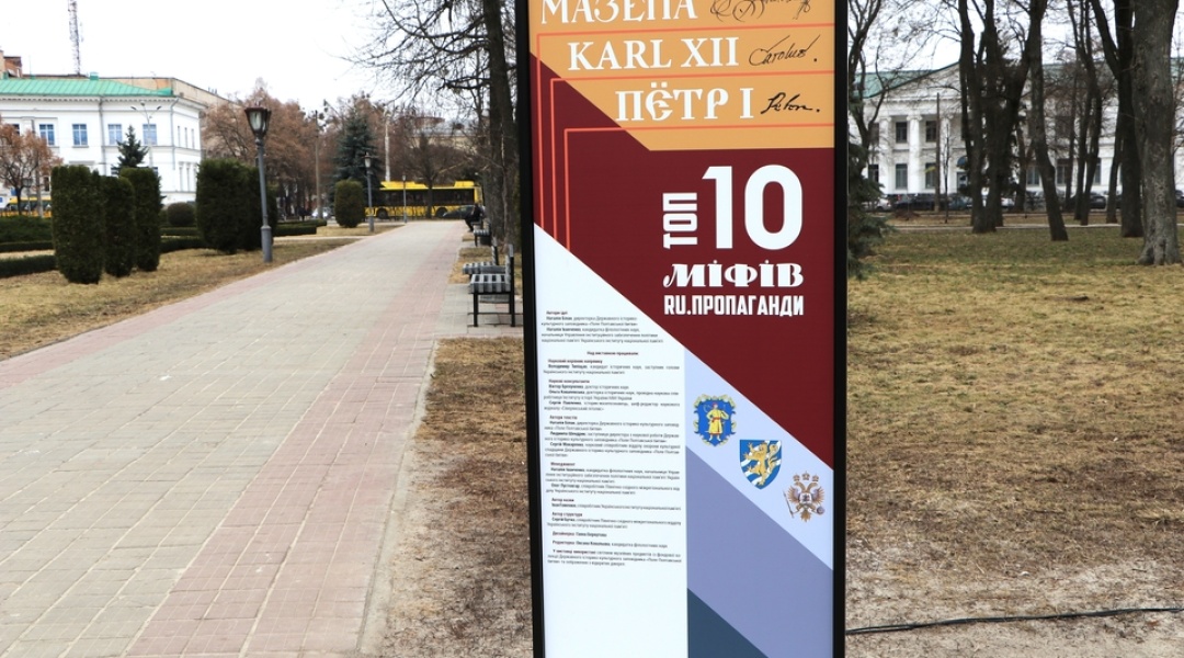 У Корпусному парку Полтави відкрили виставковий проєкт «Мазепа. Каrl ХІІ. Пётр І. Топ-10 міфів ru. пропаганди».