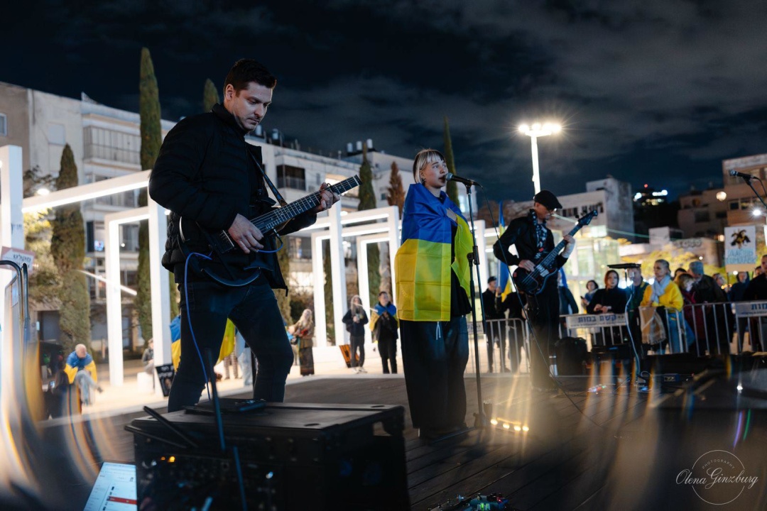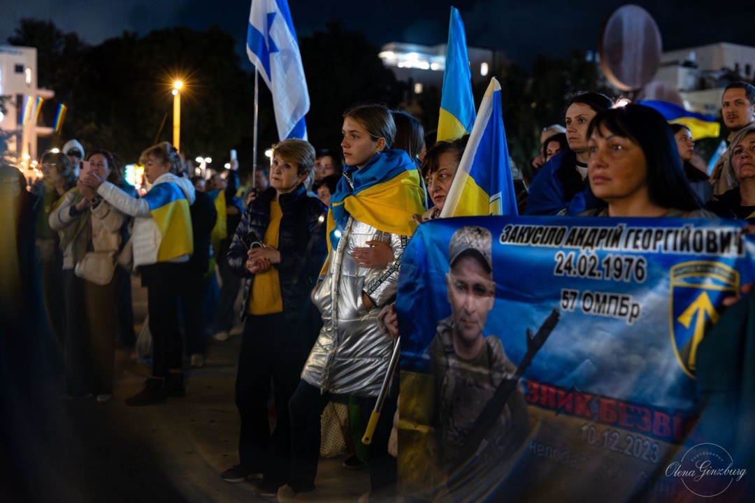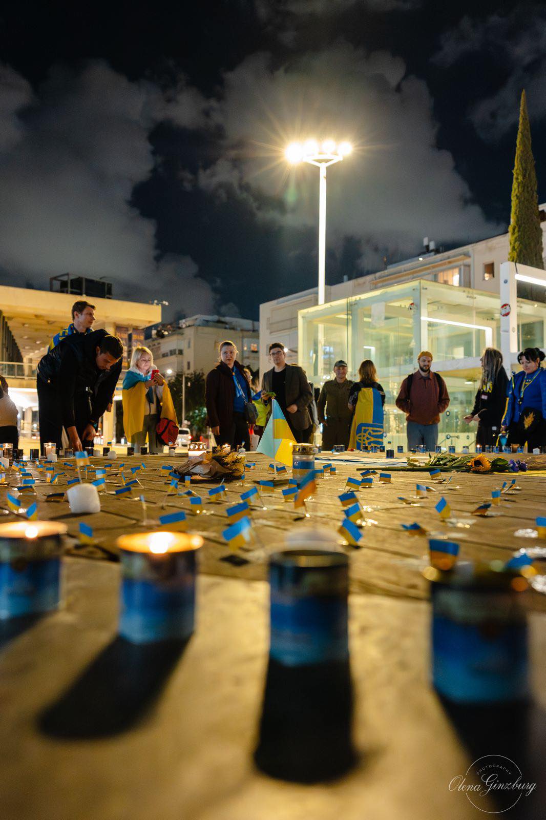 «Четвертий рік поспіль ця дата болить. Вона відгукується спогадами про зруйнований дім, холодними ночами в бомбосховищі, іменами загиблих рідних та друзів. Тому в такий важкий день ми хотіли бути разом. Учора ми стояли поруч – плечем до плеча. Разом співали гімн України. Разом співали гімн Ізраїлю», – зазначають організатори.