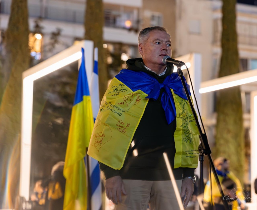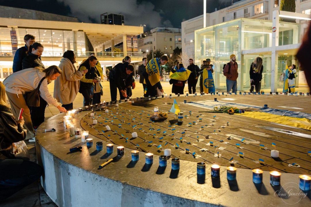 На площі біля Національного театру «Габіма» у Тель-Авіві відбувся масштабний вечір єдності та пам’яті, присвячений четвертим роковинам повномасштабного російського вторгнення в Україну.