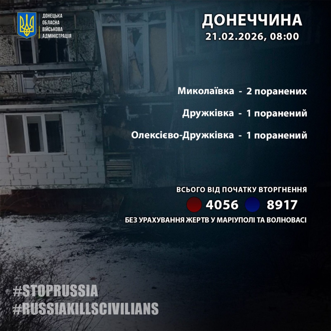 Як повідомляв Укрінформ, російські війська 18 лютого завдали поранень двом жителям Донецької області.