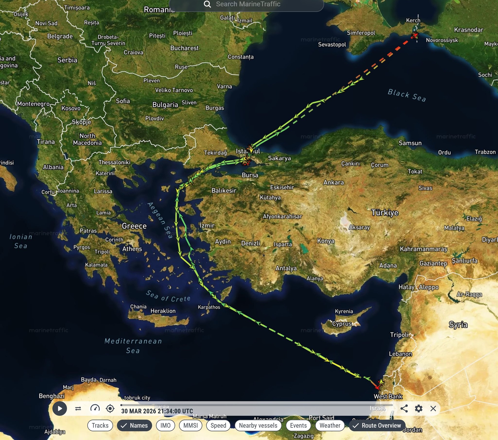 Рух судна Panormitis фото: Facebook/Катерина Яресько